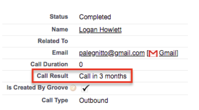 When your team is logging calls to Salesforce (with or without Groove's Dialer), the results of these calls get mapped back to Salesforce. You can configure where these call results will be found in Salesforce using the Call Settings section in Manage My Org.