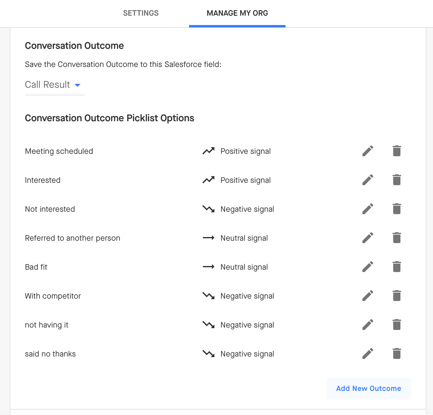 Adding Custom Conversation Outcome Picklist Values