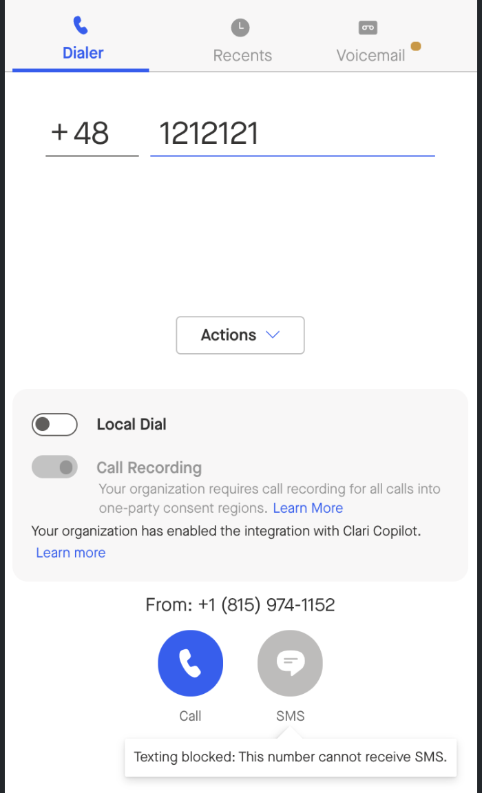 When user types invalid number or the one that cannot receive text message, the SMS Icon is greyed out and there’s tooltip informing about the reason: