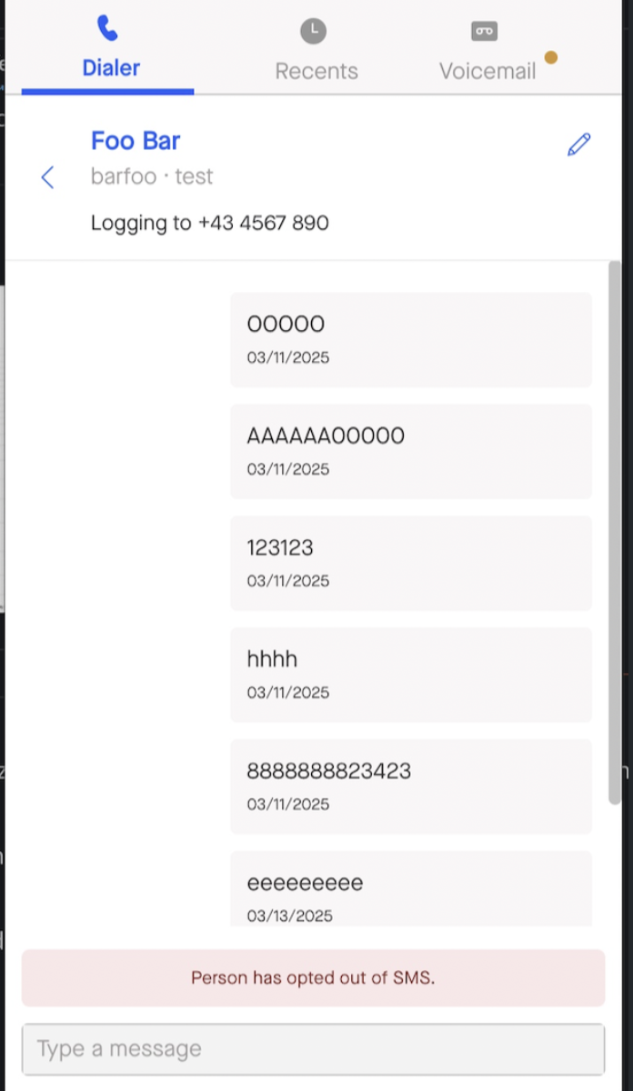Set up a custom SMS opt out field in order to ensure that your team cannot text a contact or a lead who has opted out of communication. Anytime a rep texts a person from the Dialer, they receive a message letting them know they can unsubscribe to messages from your org by texting "STOP". If a contact or lead texts back the message "STOP", this feature Dialer will automatically check the SMS Opt Out field box on the contact or lead's page and your reps will no longer be able to text them via the Dialer.