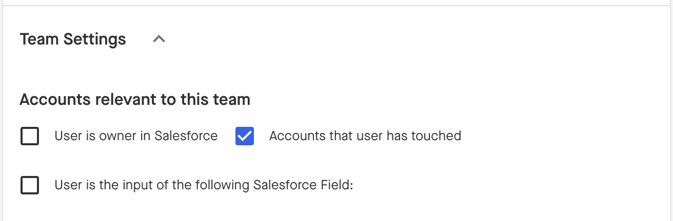 - Team Leads on a given team will see all relevant accounts for all users on their team, standard users will only see accounts relevant to themselves based on the settings options chosen.